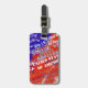 Identifizieren Sie Ihre Taschen einfach mit einem patriotischen Typografiebild der USA. Der Name des Landes, USA, in verschiedenen Schriftart Stilrichtungen und Größen, und die blaue und rote amerikanische Flagge. Personalisieren Sie es mit Ihrem Namen und Telefon oder mit anderen Informationen, die Sie bevorzugen