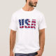 Ein typografisches Shirt, um Ihre Liebe der USA mit der Flagge als Hintergrund für die scheinbar 3D-Buchstaben zu zeigen.