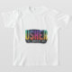 Le t-shirt présente le texte "Usher the Unrivaled" dans un dégradé multicolore et audacieux. Chaque mot se transforme sans heurts en suivant, créant un design vibrant et attrayant.
