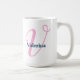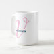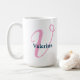 Diese weiße Tasse enthält ein rosa "V"-Buchstaben-Monogramm mit einer bearbeitbaren Vorlage, um einen Namen einzugeben, der mit dem Buchstaben "V" in der Marine beginnt. Dies macht ein einfaches, aber nachdenkliches personalisiertes Geschenk für Frauen oder Mädchen.