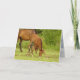 WildWindArt.com's own through bred foals, nommé Storm, étirant ses pattes avant pour son premier goût d'herbes de pâturage au printemps, sous le regard de sa mère. Le message intérieur est MOTIVATIONNEL disant "Allez bébé, allez !" Connaissez quelqu'un qui a besoin d'inspiration... ou de motivation ?