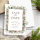 Cet hiver élégant sauvez la carte d'annonce de date dispose d'aquarelle peinte à la main verdure et pinecones disposés comme une belle couronne. Le texte est brun et l'arrière - plan blanc. L'arrière comprend un bouquet élégant. Trouvez les articles correspondants dans la collection Vacances de Noël Pinecone and Greenery.