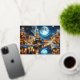 Une belle aquarelle d'une scène hivernale nocturne avec une locomotive à vapeur vintage arrivant à une station ornée de lumières festives de Noël. La neige recouvre le sol et les toits, et la toile de fond présente des montagnes imposantes sous un ciel étoilé avec une pleine lune. La lumière chaleureuse des phares du train et les lumières scintillantes créent une atmosphère de vacances accueillante et confortable, évoquant des sentiments de nostalgie et de célébration associés à la période de Noël.
