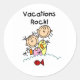 Ein niedliches Strichmännchen-Design mit zwei Strichmännchen, die mit dem Fisch- und Kid-Stil-Text "Vacactions Rock!".