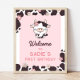 Bienvenue à vos invités avec notre adorable Affiche de bienvenue d'anniversaire de vache! Avec une petite vache sur un arrière - plan rose, ce panneau est bordé de taches de vache ludiques et de marguerites. Parfait pour ajouter une touche spéciale à l'entrée de votre fête, ce panneau d'accueil donne le ton d'une fête amusante sur le thème de la vache !