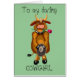 Bull aime Cowgirl dans une robe rouge faisant le cancan