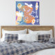 La représentation de Canvas vacille à l'extérieur, avec des oiseaux, des poulets et des fleurs. Couleur des teintes orange bleu.