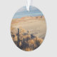 Dans le Parc National de la Forêt Petrifiée près d'Holbrook, Arizona, l'angle des herbes désertiques sur la partie inférieure gauche de la photo. Le sable s'étend jusqu'au bord droit et jusqu'aux collines striées lointaines à l'horizon. Un ciel nuageux surplombe la photo. Un autoportrait à l'ombre se dresse du bas du cadre. 35 mm, photo couleur. Copyright © 2002 Claire E. Skinner. Tous droits réservés.