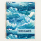 Les vagues de l'océan bleu se roulent et s'écrasent à l'avant et à l'arrière de ce capot de planificateur (avant et arrière). Customisez-le avec l'année.
