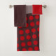 Ce kit de serviettes est muni d'un linge rouge, d'une serviette de bain marron et d'une serviette de bain au design moderne du milieu du siècle avec des lignes ondulées orange sur un arrière - plan or, des cercles rouges sur un arrière - plan marron et un arrière - plan gris. Si vous voulez le même design avec des couleurs différentes, envoyez-moi un message.
