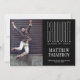 Ajoutez une photo de votre lycée ou de votre collège "Graduate" - avec de grandes lettres de style cinéma sur un arrière - plan noir et argent minimal. Personnalisé avec le nom de votre diplômée, année de classe, nom de l'école, avec les prix valedictorian en option ou les réalisations sportives, et les plans futurs sur le dos de la carte de faire-part de diplôme.