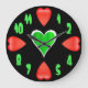 Diese Wanduhr ist mit großen roten Herzen auf jeder der vier Stunden entworfen (12, 3, 6, 9), mit einem irischen grünen Herzen in seiner Mitte. Macht eine große Geschenkidee für Valentinstag und auch St Patrick Tag!