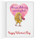 Animal Parade Romantique Chicken Heart and Love Big Card présente notre oeuvre amusante d'un poulet jaune tenant un joli rose dans son bec avec des coeurs violets, rouges et roses en couches. Ce poulet sucré en amour design est un cadeau parfait pour la Saint-Valentin, son anniversaire, pour proposer le mariage d'une manière amusante et originale, ou juste pour dire, je t'aime. Cluck, accroche !