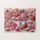This "Sweet Valentine Bliss: A Delightful Spread of Romantic Desserts" jigsaw puzzle captures the sweet and romantic essence of Valentine's Day through a delightful arrangement of desserts. Featuring heart-shaped cookies, frosted cupcakes, and delicate macarons in vibrant pink and red tones, the artwork celebrates the joy of love and indulgence. Every detail, from the intricate frosting swirls to the floral embellishments, evokes a sense of celebration and warmth. The pastel background adorned with roses and bows enhances the festive and romantic atmosphere, making this piece a perfect homage to the love-filled holiday. Ideal for those who cherish sweet moments, this painting is a visual treat that inspires joy and connection.