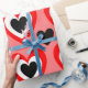 Valentinins Packpapier mit roten, weißen und schwarzen Herzen überzogen.