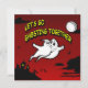 Valentinstag Halloween Ghosting zusammen flach Save the Date Karte. Wenn du nur alle anderen aufnehmen willst und ganz allein sein willst, wenn du 2 "Soul"-Partner bist, wenn du in Liebe bist, aber Halloween ist das Leben, dann ist diese Karte für dich. Titled: "Let's Go Ghosting Together", mit einer Abbildung von zwei Geistern, auf einer atmosphärischen Halloween Stadt Silhouette, mit einem Mond und Fledermäuse.