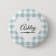 Valentine Heart Blue Gingham Name Monogram Button