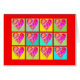 Auf der Karte dieses Valentinstag wird ein Gitter von bunten Herzen auf rotem Hintergrund dargestellt. Bleiben Sie drinnen, um eine persönliche Liebe oder Liebesnachricht zu erhalten. Bild und Vers Copyright © Shoaff Ballanger Studios.