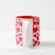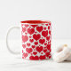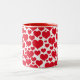 Keramik Kaffee Tasse wird mit einem festlichen Valentinherzen-Druck gezeigt. Farbrotes Interieur Passen Sie dieses Objekt an oder kaufen Sie, wie es ist.