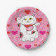 Glück in der Liebe. Glückliche Katze mit viel Glück-Kanji-Symbol und Herz.
