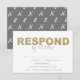 Diese Karte wurde für die Koordination mit meinem zeitgenössischen Schreibwarenkarte entworfen und verfügt über ein modernes x und o muster auf grauem Hintergrund. Die Gäste haben Platz, um ihre Antwort-Informationen und die einfache Wahl des Essens mit dem Wort Respond in Imitats Gold hinzuzufügen. Ideal für Valentinstag Hochzeiten, Babyduschen, Geburtstagspartys und Brautpartys. Weitere Informationen zur entsprechenden Schreibwarensammlung finden Sie unter www.zazzle.com/dotellabelle