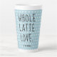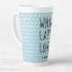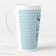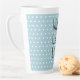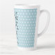 Feiern Sie Liebe und Freundschaft mit dieser Valentinstag Latte Tasse, mit dem Text 'Vollständige Latte Liebe' in schwarzem Skript auf einem pastellblauen Hintergrund mit einem hübschen kleinen Herzmuster. Personalisieren Sie dieses herzliche Geschenk mit Ihrem Namen! Exklusiv für Sie entworfen von Happy Dolphin Studio.