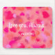 Remind your special person every day about how much you love your favorite human! This lively design, featuring various pink and red hearts scattered on a soft pink background, is the perfect romantic gift for your desk worker. Or Gamer. Or writer. You get the idea. ;)