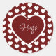 Hugs Valentine's Day Hearts Sticker, mit dunkelroten und weißen Herzen und weiß anpassbaren Skriptschriften. Ein niedlicher Weg, ein wenig mehr zu diesem besonderen Valentinstag-Geschenk hinzuzufügen.