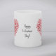 Two whimsical trees with red and pink watercolor style heart leaves decorate this coffee mug. Between them is text "Happy Valentine's Day" which can be changed. AI assisted graphic purchased with commercial use. Artwork: RedHeronLighthouse
