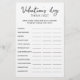 Kaufen Sie dieses Spiel und genießen Sie die hochwertige Valentine's Day Think Fast Karte für Ihr Party! Schwarzweiß-Design.
