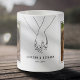 Niedliche Valentinstag Tasse mit einer Linie, die von einem Paar mit Händen zeichne, 2 Fotos, die Sie durch Ihre eigene ersetzen können, die Paarnamen und das Jahr, das festgelegt wurde.