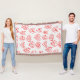 Diese Wurfdecke hat ein Mitte des Jahrhunderts modernes valentinisches Design von verstreuten roten Herzen Mazes auf einem Feld von Weiß.