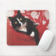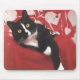 Valentine-Katze Mousepad, eine niedliche Schwarzweiss-Katze umgeben durch Valentineherzen.