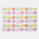 Eine originelle Marker-Abbildung einer Reihe von pastellfarbenen Süßwarenherzen, jedes mit einem lustigen Sprichwort. Perfekt für den Valentinstag!