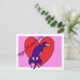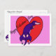 Eine lila Dackel, die sich in einem "Spruß" niederlegt, mit einem roten Herz, der Ihnen einen "glücklichen Valentinstag" wünscht. Auf der Rückseite lautet die Karte "Ich hoffe, Sie haben einen Hintern-vollen Valentinstag" mit einem lila Dackel Hintern.