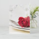 Valentinabendessen mit rote Rose und Silbergeschirr auf einem Teller