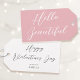 Fügen Sie die persönliche Note mit individuellen Geschenkanhängern hinzu. Dieses stilvolle Design enthält "Hello Beautiful" in Brush-Script-Typografie und kann mit einem Namen und einer "Happy Valentine's Day"-Nachricht angepasst werden. Eine vielseitige Vorlage, die für einen Geburtstag, eine Brautparty, einen Junggesellinnenabschied, Galentine's Day und andere besondere Anlässe angepasst werden kann. Das einfache, elegante Design ist eine einzigartige Ergänzung für Ihre Geschenkverpackung, Partygeschenke und mehr. Gedruckte Farben: rosa und weiß, oder passen Sie die Hintergrundfarbe mit dem Design-Tool an.