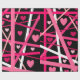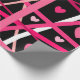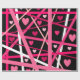 Dieses Packpapier ist mit Herz bedeckt und zufällige Linien von Rot, Rosa und Weiß auf einem schwarzen Hintergrund, der die Farben Pop macht.