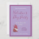 Lila und rote Party Einladung zum Valentinstag mit einem niedlichen Gnom