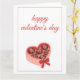 Überraschen Sie jemanden mit dieser charmanten Valentinstagskarte, die eine herzförmige Schokoladen-Box mit einer roten Schleife zeigt. Ein süßes und romantisches Motiv, perfekt für den Valentinstag.