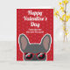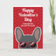 Franzosen, schicken Sie dem Menschen eine Valentinenkarte nur von Ihnen. Das Design zeigt einen niedlichen blauen, französischen Bulldoggen mit roter Sonnenbrille auf einem roten Hintergrund mit einem subtilen Herzmuster. Die Formulierung auf der Vorderseite lautet "Happy Valentine's Day from the one you most", aber kann geändert werden. Innen steht "Ich pawsitiv Liebe Sie", aber auch kann geändert werden. Dieses Design ist auch mit verschiedenen bunten französischen Bullhunden erhältlich.