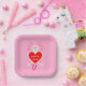 Dieses phantastische Set aus quadratischen Party-Tellern zeigt ein digitales Kunstbild eines niedlichen axolotl, eines mexikanischen Salamander, der ein rotes Herz trägt. Der Axolotl ist hellrosa mit riesigen schwarzen Augen und einem großen rosa Lächeln. Es hat hellrosa Feathery Kiemen auf der Kopfseite und einen hellen rosa Tuch auf dem Schwanz. Es ist rosa Text im Herzen, der Liebe You a Lotl liest.