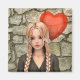 3D digitale Darstellung eines schönen Teenagermädchens in einem Retro-Kleid, das einen Ballon in einer Herzform auf einem Hintergrund aus Stein hält. Perfektes Valentinstag-Geschenk