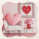 Dies ist ein hübsch rosa MCM Art Valentine's Day Untersetzer Set. Das Valentinische Design wurde mit generativer Kunst geschaffen. Die Kunstwerke sind mit einem digitalen Foto aus einem Zimmer mit einem Kissen in rosa Herzform in einem weißen Stuhl, rosa Blume in einer roten Vase, einem Wort Liebe in einem roten und silbernen Herzen in einem silbernen Rahmen an der Wand, einer rosa Wand und einem rosa Teppichboden ausgestattet. Der Untersetzer ist ein Untersetzer aus einer Klammer. Im Set sind 6 Untersetzer.