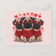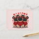 Niedliche Darstellung von Mops-Hunden in Rot und Rosa für Valentinstag. Ideal für Liebhaber von Haustieren während der Valentinstag-Saison.