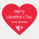 Rote, herzförmige Aufkleber mit dem Text "Happy Valentine's Day" und individuelle Name mit zwei rosa Herzen darunter. Verwendung als Umschlag Aufkleber, Aufkleber für Geschenke und Gefälligkeiten, Produktverpackung, Handwerk und Scrapbooking usw.