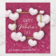 Happy Valentine's Day feierlich funkeln Glitzer bordeauxrot dunkelrote Hintergrund Illustration mit weißen realistischen 3D Herzen und goldenen Rahmen Folie. Text in modernen Schriftzeichen geschrieben.