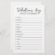 Kaufen Sie dieses Spiel und genießen Sie die hochwertige Valentine's Day Word Scramble-Karte für Ihr Party! Schwarzweiß-Design. ANTWORTEN: 1-Bewunderer, 2-Bouquet, 3-Schokolade, 4-cupid, 5-Blume, 6-Herz, 7-Romantik, 8-Sweetheart, 9-valentine, 10-Rose, 11-Hug, 12-Liebe, 13-Pfeil, 14-glücklich