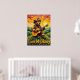 Dieses wunderbare Bild zeigt einen Bären, der als Feuerwehrmann verkleidet ist, eine Sonnenbrille und einen Helm trägt, eine akustische Gitarre spielt, während er auf einem grasbewachsenen Knoll sitzt und über einem malerischen Tal unter einem warmen, bunten Sonnenuntergang sitzt. Unter den Wildblumen. Die dicken, strukturierten Pinselstriche verstärken den whimsikalen und süßen Charakter der Szene, wobei "Liebe My Honey" hervorgehoben dargestellt wird.