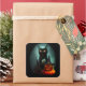 Vampire Cat and Wizard Pumpkin Halloween Surreal Quadratischer Aufkleber